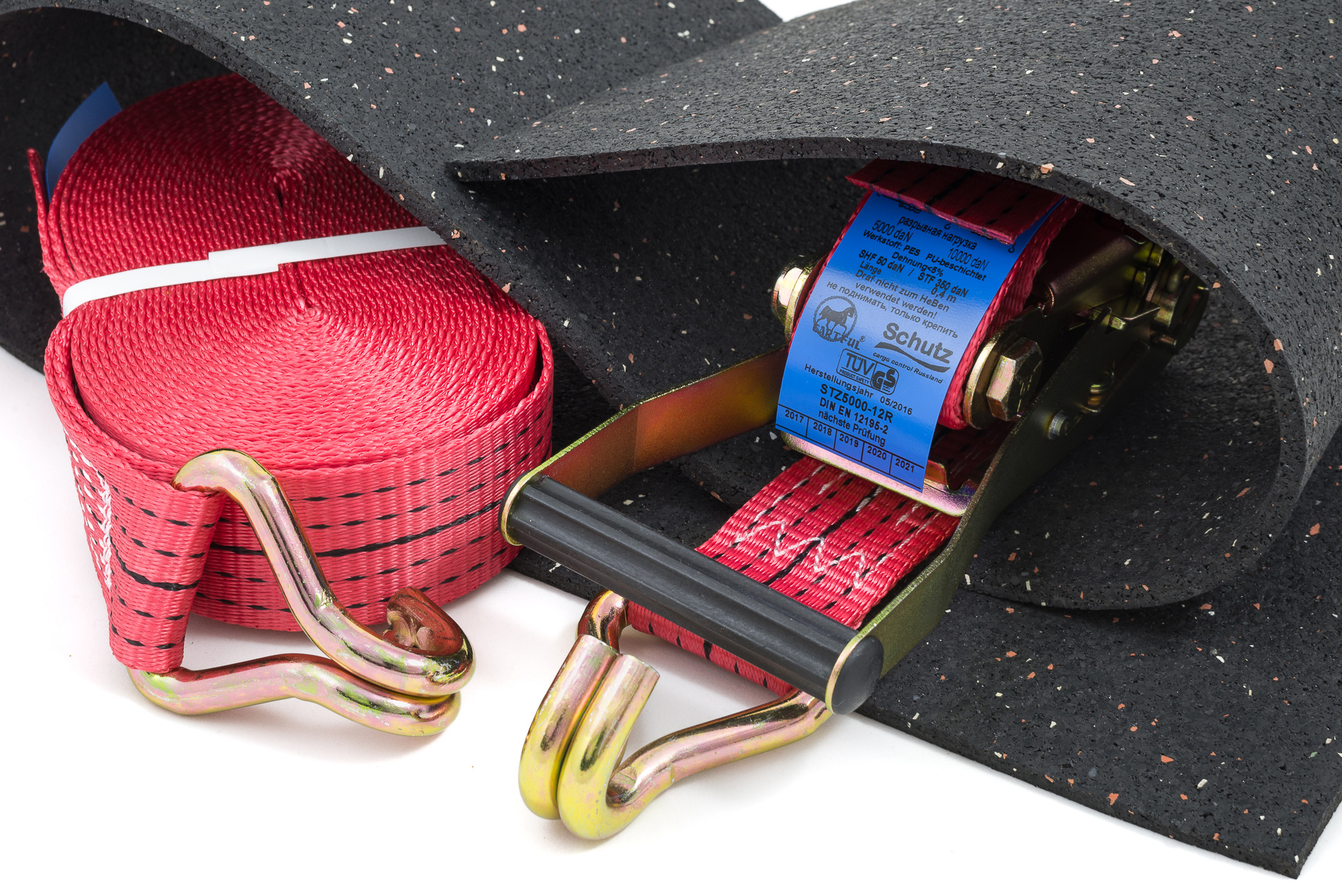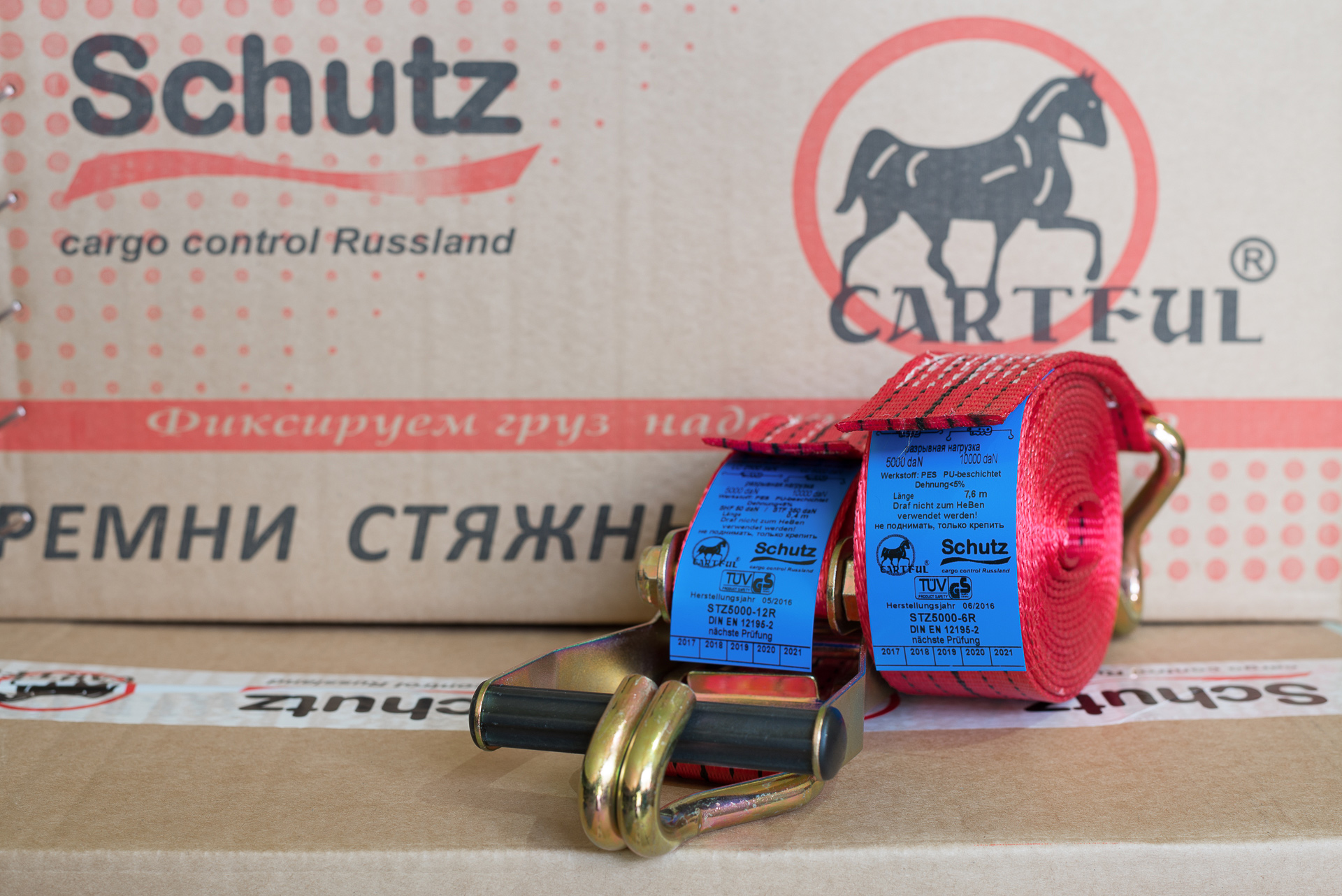 Стяжной грузовой ремень Schutz 8 метров, 5/10 тонн, состоит из двух частей, изготовленных из высокопрочной полиэфирной нити.
